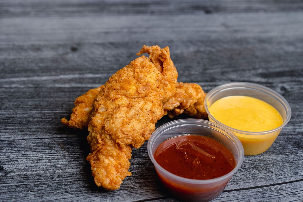 Our crispy chicken topped with slaw, homemade spicy dressing, and pickle chips on a brioche bun.