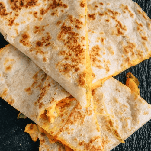 Jumbo size flour tortilla grilled shimp and melted cheese. Served with a side of rice, beans, pico de gallo, and sour cream