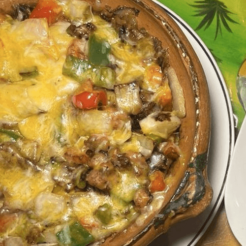 Steak, chicken and shrimp grilled with Mexican chorizo on a bed of Mexican rice, topped with our homemade queso. Served with rice, beans, and flour tortillas